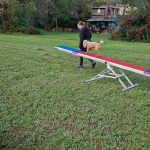 Un terrain d’agility – à première vue – ressemble à un grand terrain de jeu. Vous y trouvez de différents obstacles dans un parcours tels que tunnel, haie, cerceaux, mur, passerelle, balancoire et slalom. Votre toutou devra surmonter les obstacles sous votre pilotage. Cela va améliorer la communication et créer un lien de confiance entre vous deux. Vous formerez une équipe avec votre chien et sous les instructions vigilantes de Michael vous apprendrez à votre chien à passer les différentes épreuves. Vous lui apprendrez à passer à travers un tunnel ou à sauter un obstacle. C’est en jouant, en apprennant à votre chien à monter et passer sur une balançoire et en lui désignant le chemin à travers un slalom que vous et votre toutou sortirez de votre quotidien. Aussi cela vous fera dépencer beaucoup d’énergie à vous deux ce qui sera bon pour pour la santé et pour la ligne.